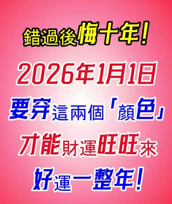 錯過後悔十年! 2026年1月1日要穿這兩個「顏色」才能財運旺旺來,好運一整年⚠️2026 年 1 月 1 日一定要穿!這兩個「顏色」才能財運旺旺來 好運一整年!1 月 1 日,不只是元旦, 在命理中,它是—— ? 整年財運正式啟動的第一天。這一天穿對顏色, 等于替 2026 年的財運先打好底。
