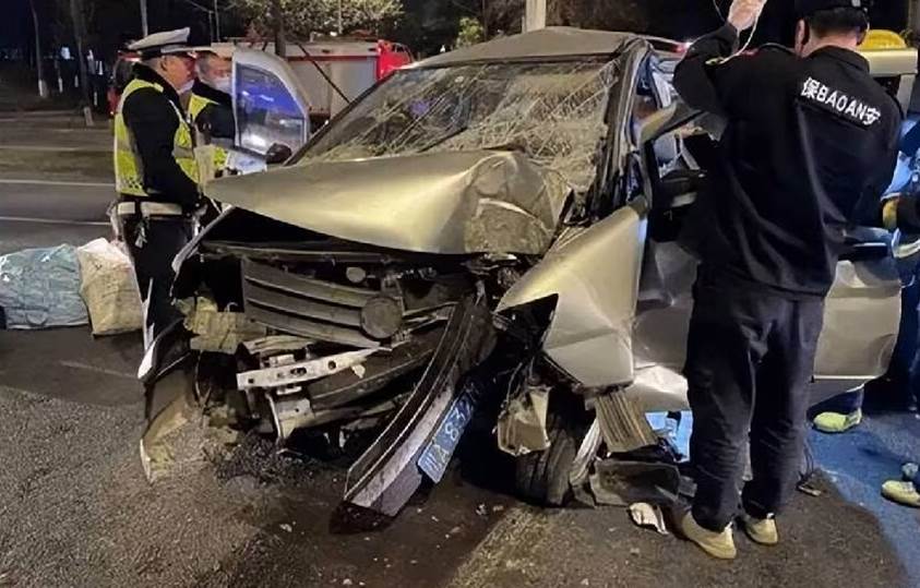 事發地是一處交通事故現場。昏暗的路燈下,一女司機不小心把正過馬路的學生撞翻在地,左前輪胎直接從身上軋了過去,四肢扭曲畸形,鮮血濺了一地。