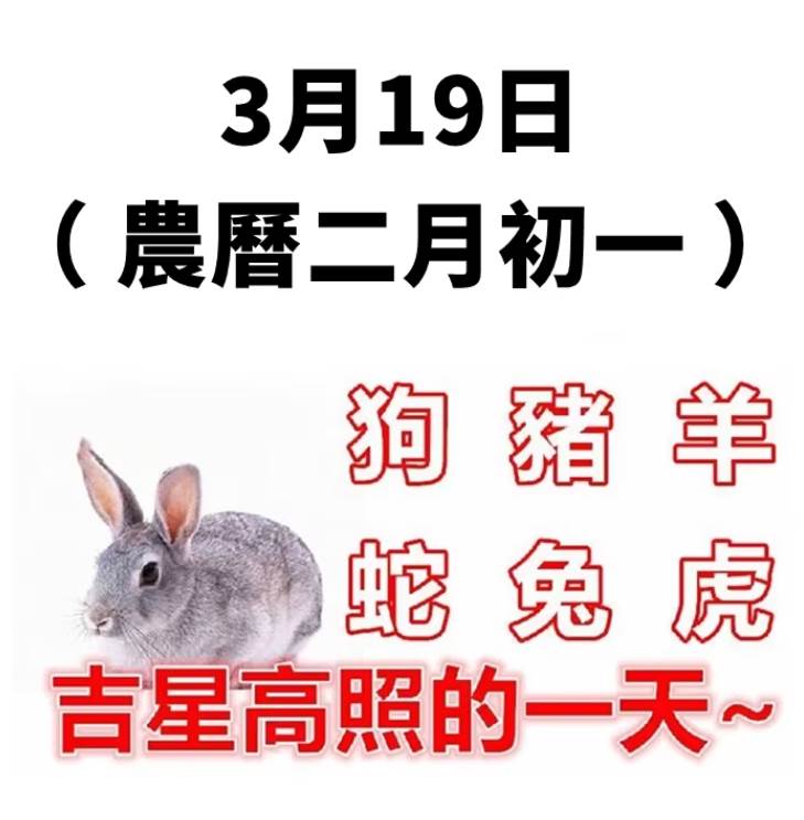 小運播報:2026年3月19日,星期四,晨二月初一,法定工作日。特吉生肖:狗豬·羊次吉生肖:蛇、兔、虎喜神方位:西北方財神方位:東北方宜:訂婚、出行、宴會交易、約赴任、開光祈福、祭祀、破土、啟攢忌:解除幸運數字:78幸運顏色:紅色青色紫色